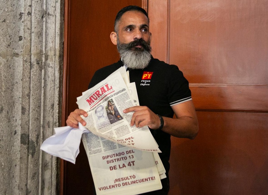 El 12 de febrero, según denunció el diputado del PT, en su barrio Mezquitán aproximadamente a las 6:00 horas se estuvieron repartiendo papeles tamaño tabloide que contenían una nota del periódico Mural referente a sus antecedentes penales, incluyendo la frase “violento delincuente”.